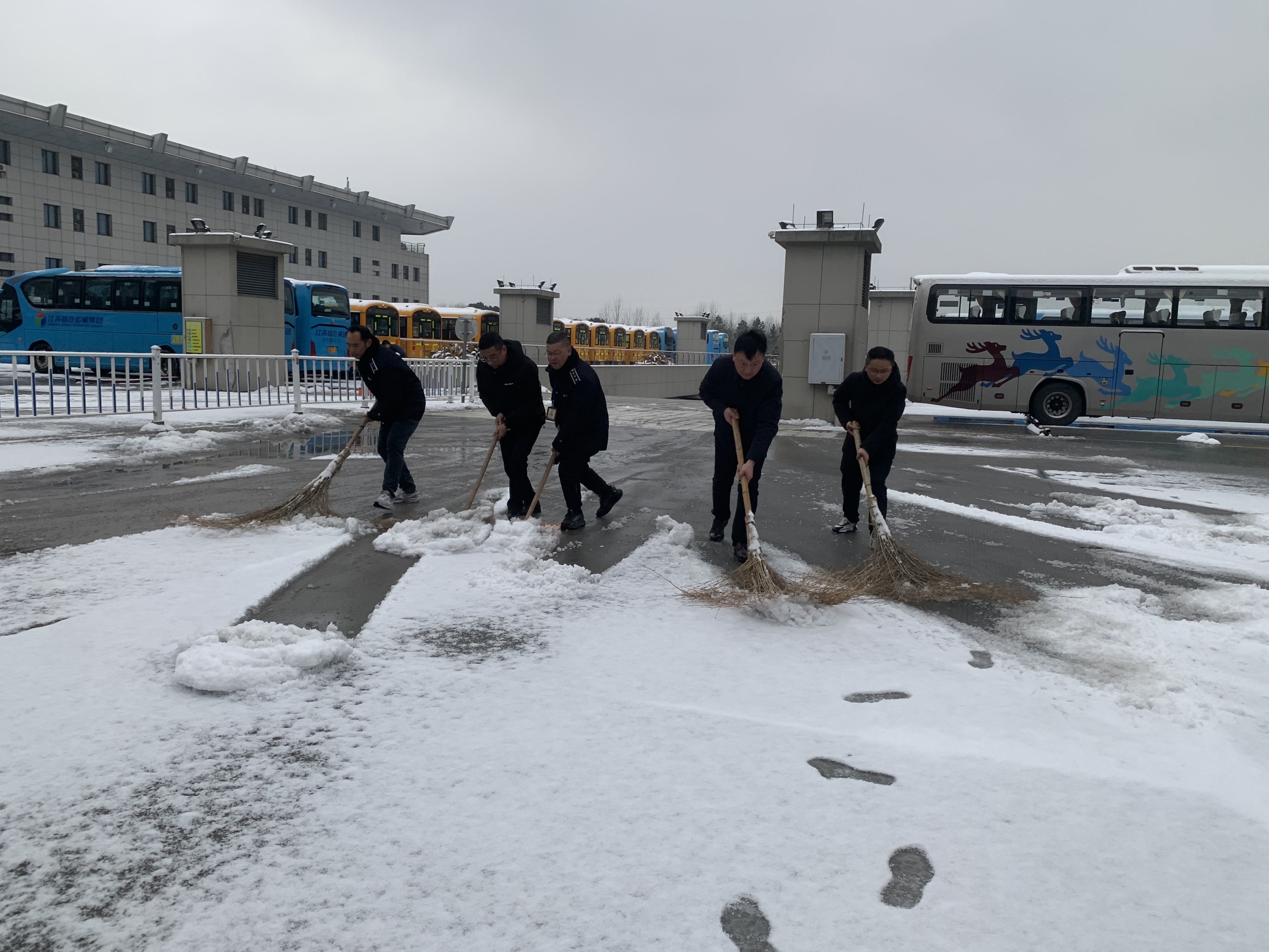 破冰除雪,安全出行。揚(yáng)汽集團(tuán)總經(jīng)理劉俊帶領(lǐng)應(yīng)急值班值守和安管人員開展雪地清掃工作,進(jìn)一步落實(shí)落細(xì)各項(xiàng)應(yīng)急保障措施,現(xiàn)場叮囑相關(guān)負(fù)責(zé)人要時刻關(guān)注天氣情況和道路狀況,科學(xué)合理安排班次,確保旅客出行需求。